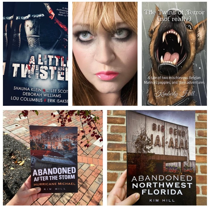 I mainly write short stories. From horror to speculative – I like to tell a story in fewer words. As far as full books, I have one anthology written with others called “A Little Twisted.” I’ve also been in multiple anthologies. I have a children’s book called “The Twins of Terror (not really),” which is about our twin Belgian Malinois dogs we had. I also have two photography and history books called “Abandoned Northwest Florida” and “Abandoned After the Storm: Hurricane Michael.” Those are with a traditional publisher I was approached by. I’m especially proud of them. I’ve seen them in the big box stores, and even on sites that used one for training purposes.